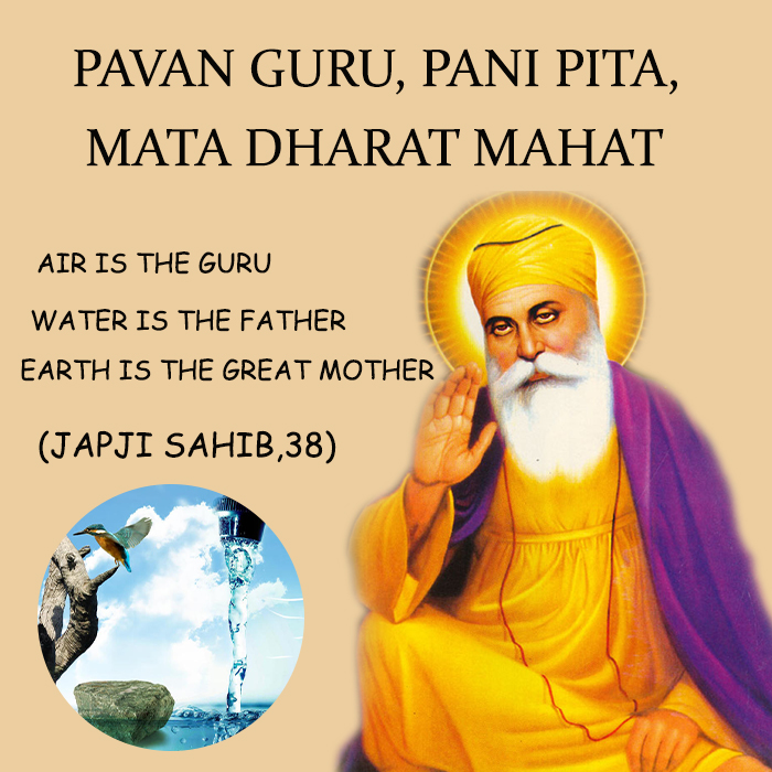"Pavan Guru, Pani Pita, Mata Dharat Mahat" (ਪਵਣੁ ਗੁਰੂ ਪਾਣੀ ਪਿਤਾ ਮਾਤਾ ਧਰਤਿ ਮਹਤ)